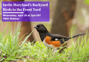 Join Maryland Bird Conservation Partnership for a free webinar at 7PM EST on Wednesday, Apr 29. Did you know that the breeding distributions of beloved “backyard birds”—such as Eastern Towhee, Northern Flicker, and Baltimore Oriole—are declining in Maryland? Learn how you can take action to help these and other familiar species through prioritizing native plants, reducing pesticides, and making sure your efforts aren’t hidden in your backyard, but extend to your front yard to connect with your neighbors. Can’t make it? RSVP now and we’ll send you a recording to enjoy when the time is right for you.